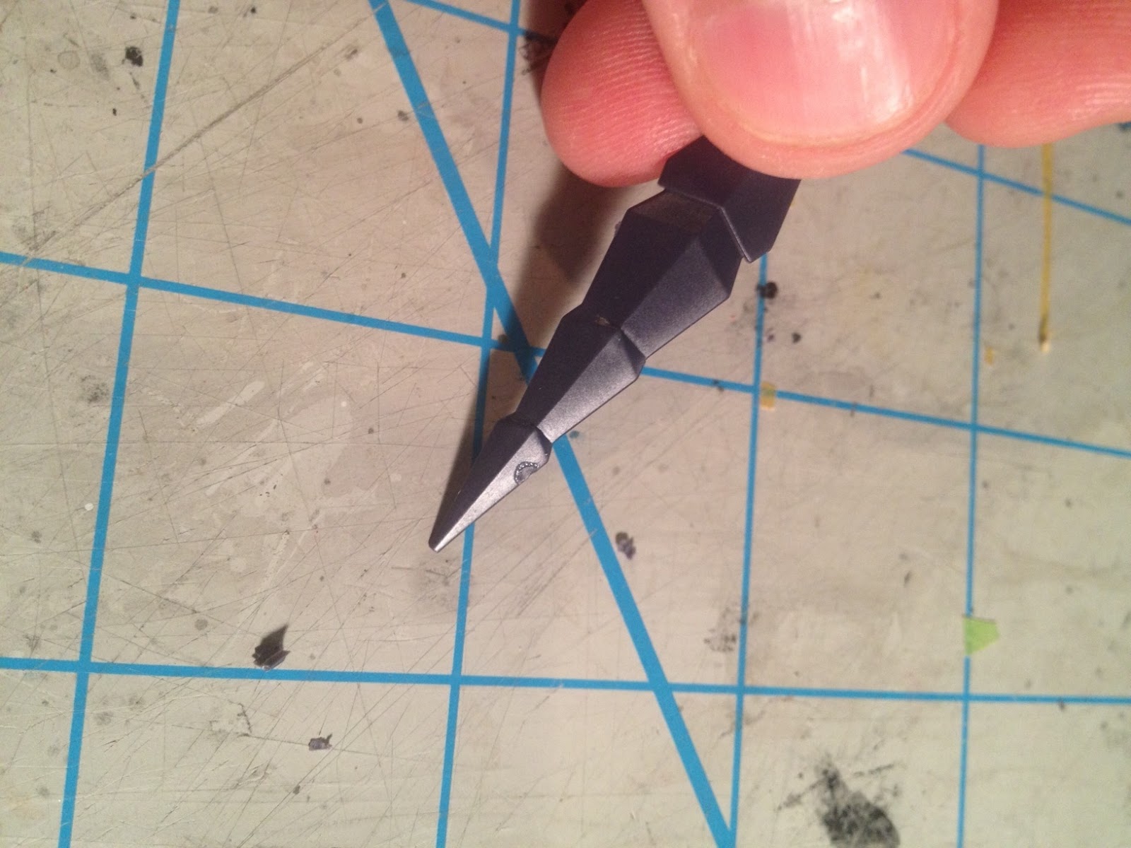 Once the glue has fully dried use your X-acto knife to trim the nub off of the part. And follow that up with various grits of sand paper.