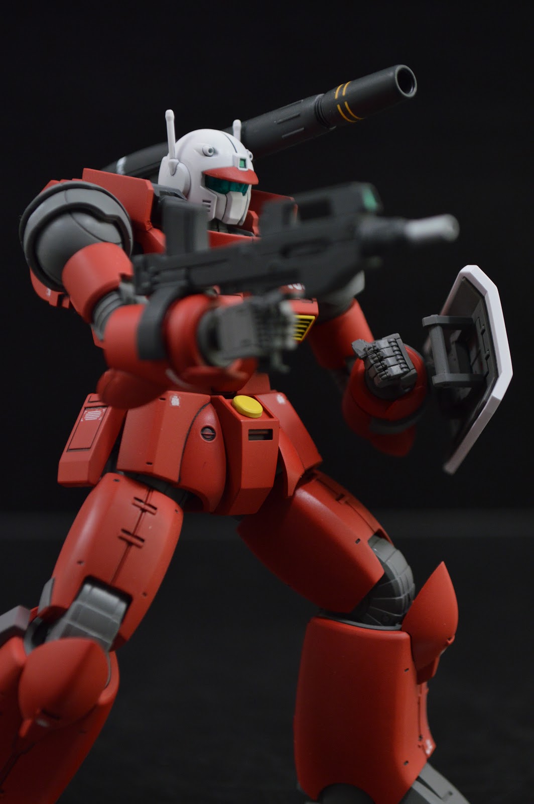 Early on I decided to that the stock color scheme of the early type model wasn't really doing it for me. The same goes for the 'arcade claw machine' style of hands. I used a set of builders parts HD hands and used the ball joint from the stock hands to ensure that they would fit the socket. If I had the chance I would have preferred to have a matching set of shoulder cannons similar to the RX-77.